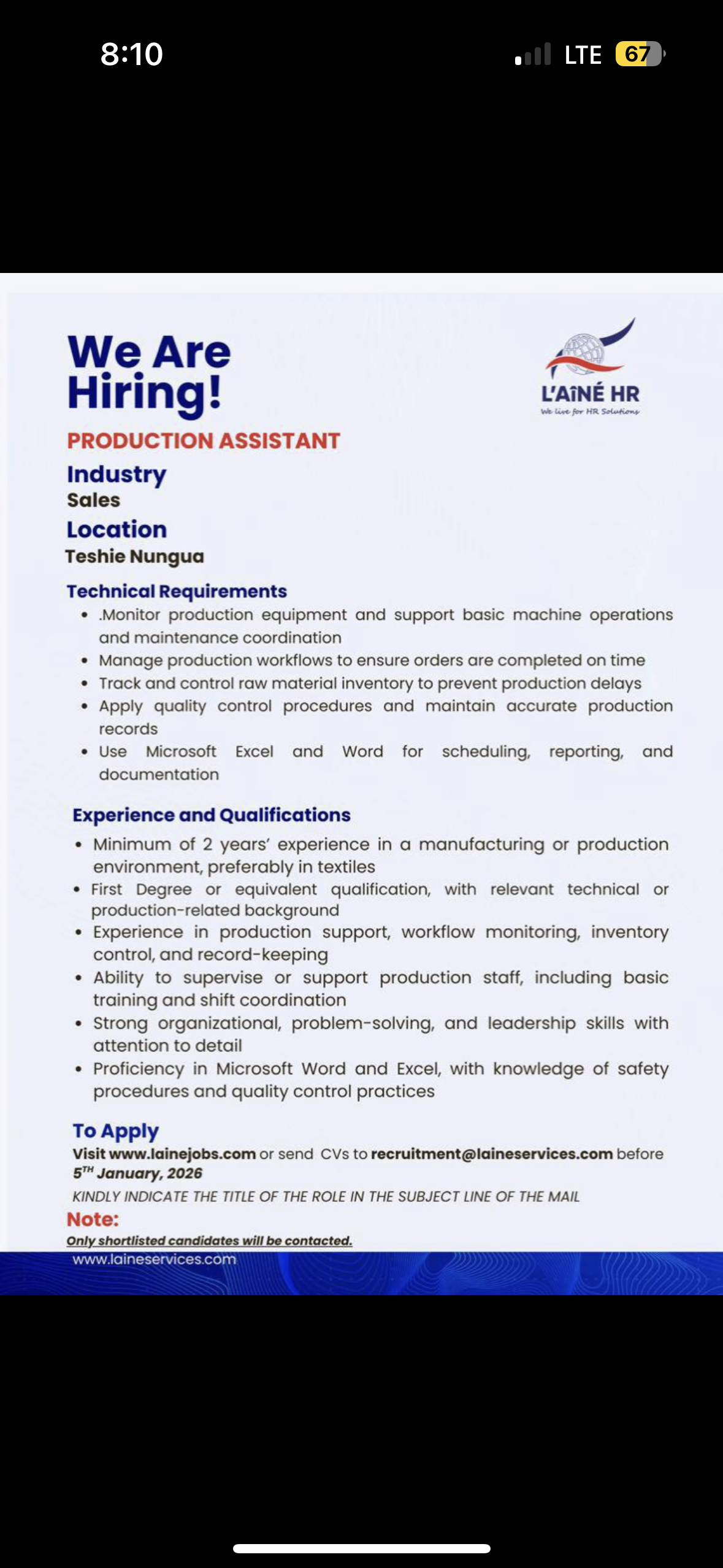We Are Hiring! We live for HR Solution PRODUCTION ASSISTANT Industry Sales Technical Requirements β’ β¦